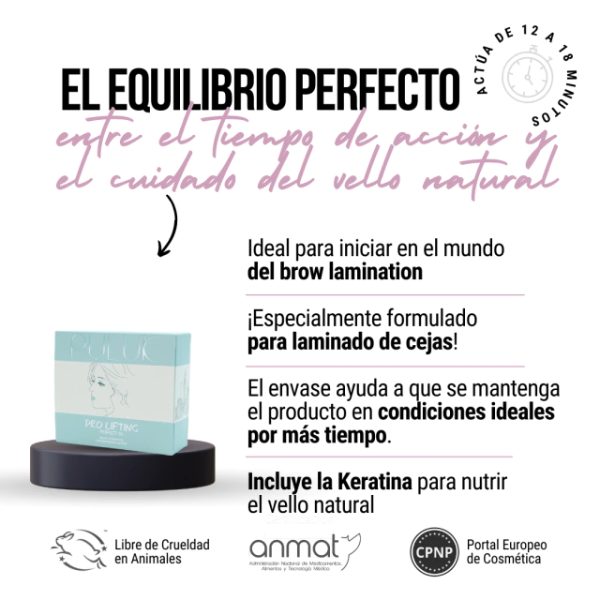 ¡Especialmente formulado para laminado de cejas!
